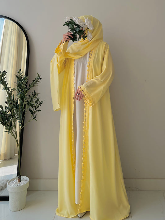 Butter Yellow - Raya Embellished Abaya Set