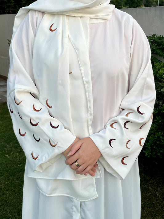 PEARL WHITE - MOON EMBROIDERED ABAYA SETRegular price Rs.4,900.00 PKRRegular priceUnit price / perRs.4,900.00 PKRSale price Rs.4,900.00 PKRSold out