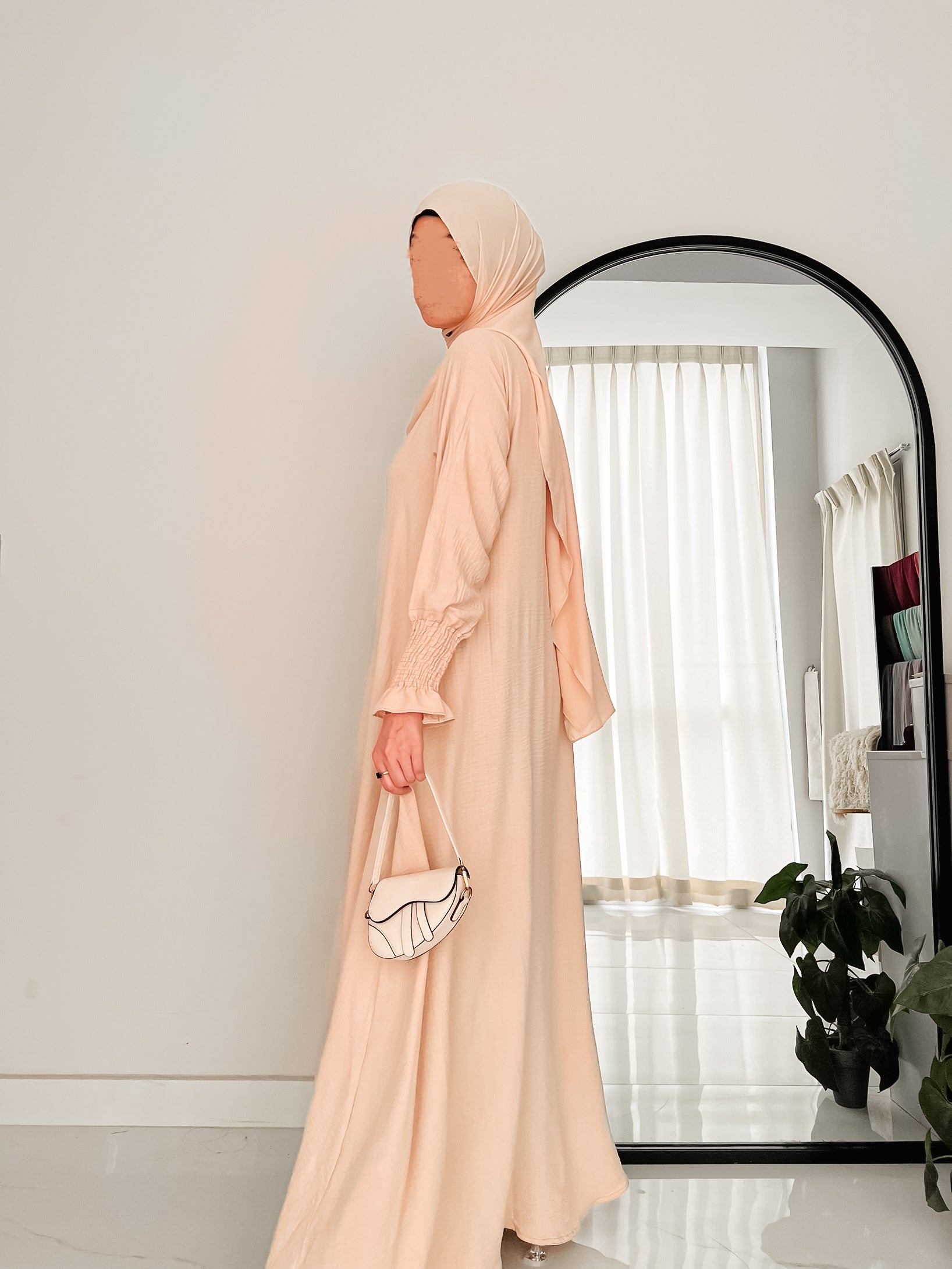 Ivory Basic Abaya Is Made In Soft CEY Fabric, This Abaya Features French Frilled Sleeves And Handy Pockets On Both Sides. A Comfortable And Modest Pick For Everyday Wear.